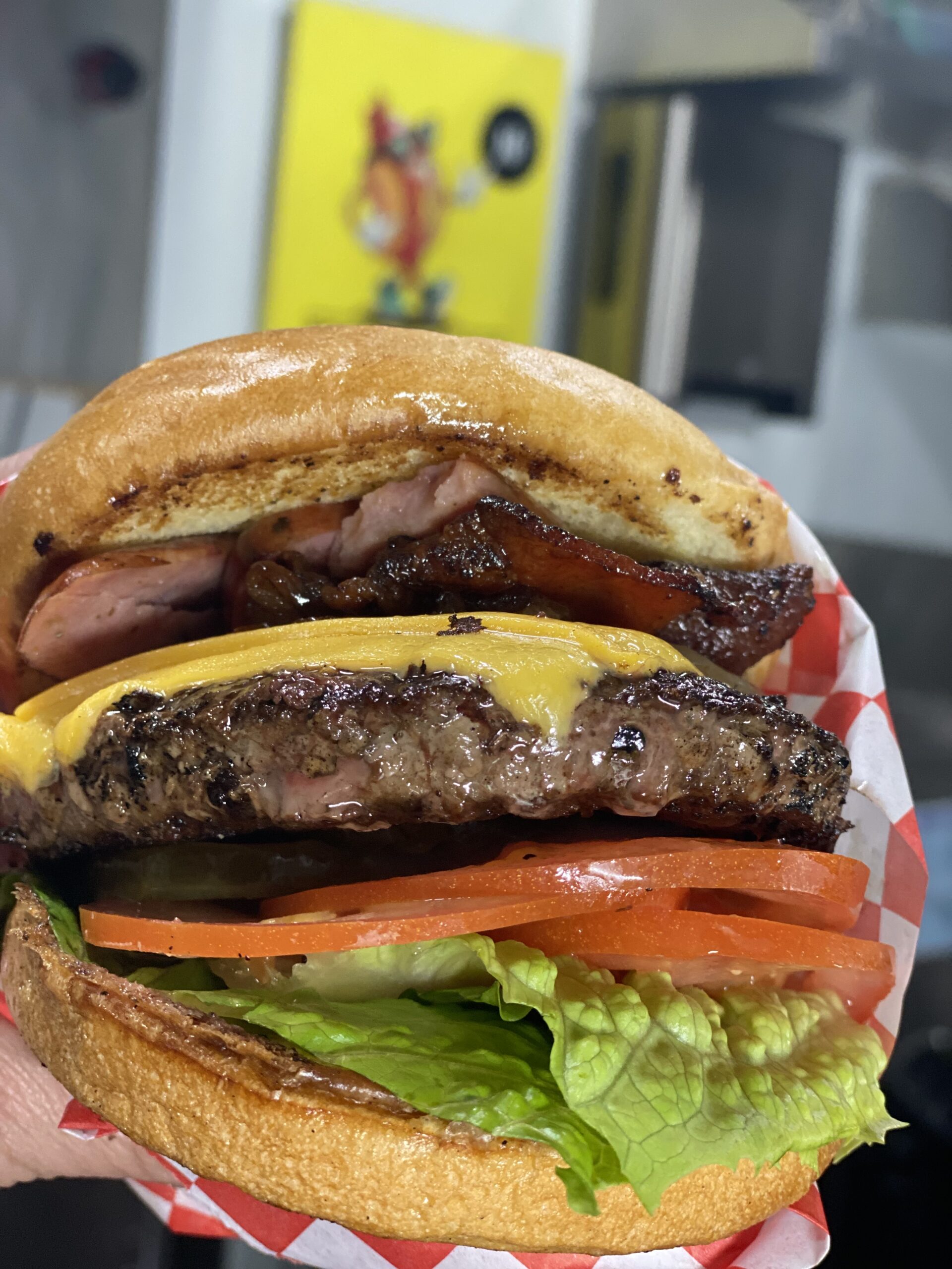 Old-school flavor, Barfly attitude. Our Cheese Burger starts with a perfectly seasoned Angus beef blend, topped with melted American cheese for that nostalgic drip. Fresh lettuce and tomato meet pickled red onions and classic pickles for a crunchy, tangy twist all pulled together with spicy ketchup and a punch of mustard. It’s the cheeseburger you grew up with, leveled up for grown-up cravings.